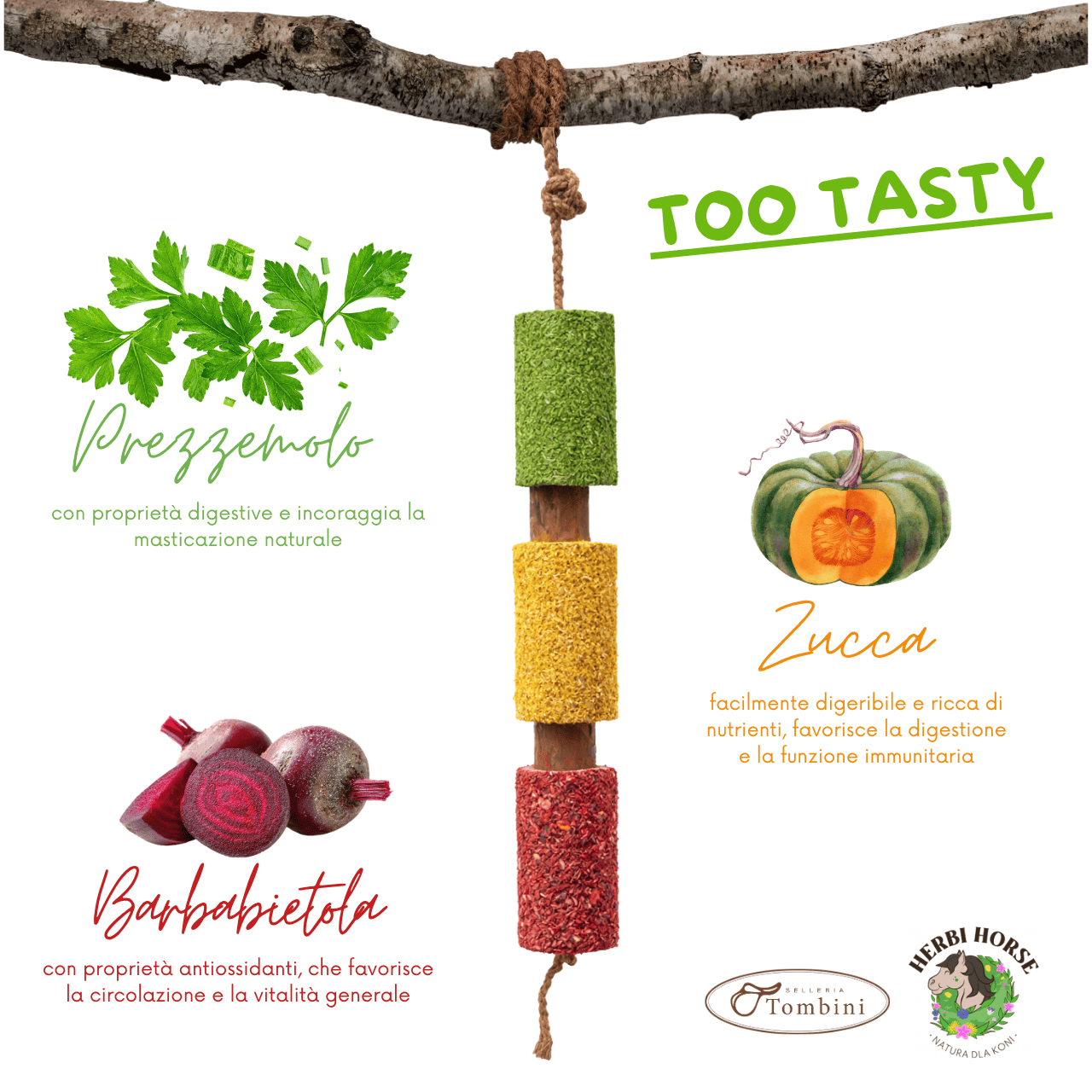 Gioco antistress in legno 100% biologico ed etologico dal profumo di foresta che abbatte la noia nel box e rilassa. Adatto a tutti i cavalli, senza zuccheri aggiunti e senza aromi artificiali o conservanti. Edizione limitata.