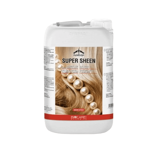 Lozione lucidante con azione sgrovigliante. Super Sheen di Veredus dona al manto ed al crine una splendida brillantezza e luminosità. Rende coda e criniera morbide, setose e prive di nodi per 15 giorni.