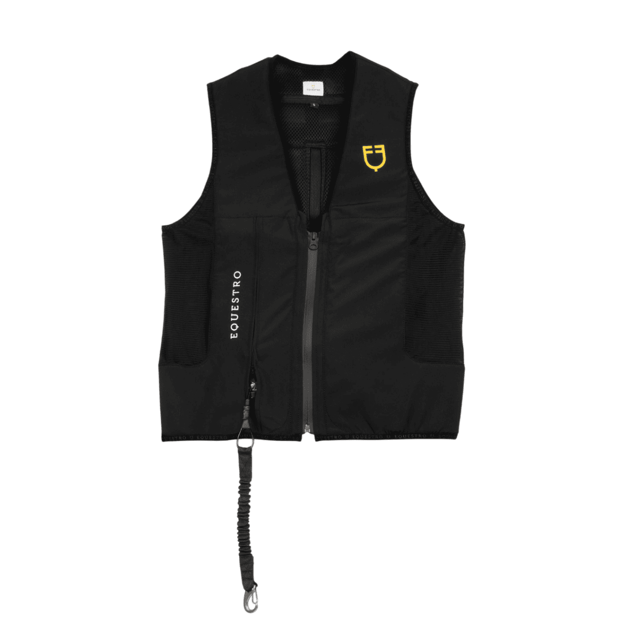 Bustino protettivo da equitazione Equestro con airbag a gonfiaggio rapido, realizzato in materiali tecnici leggeri. Protegge le aree vitali di collo, schiena e torace.