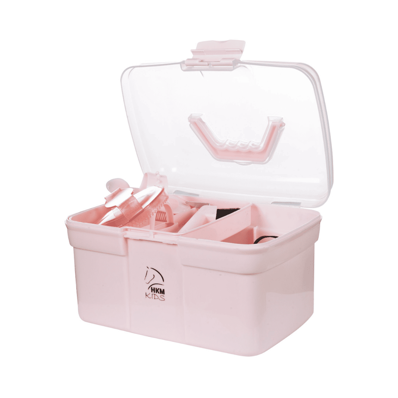 Bauletto completo di 7 spazzole per la pulizia del cavallo. Questo kit contiene tutto il necessario per la cura quotidiana del pony o del cavallo.