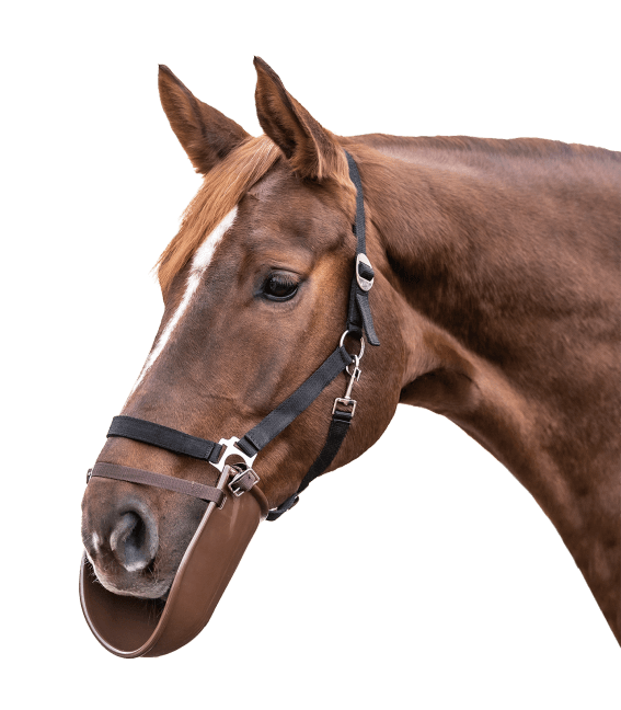 Protezione in plastica resistente per i cavalli che mordono la coperta, da agganciare alla capezza.