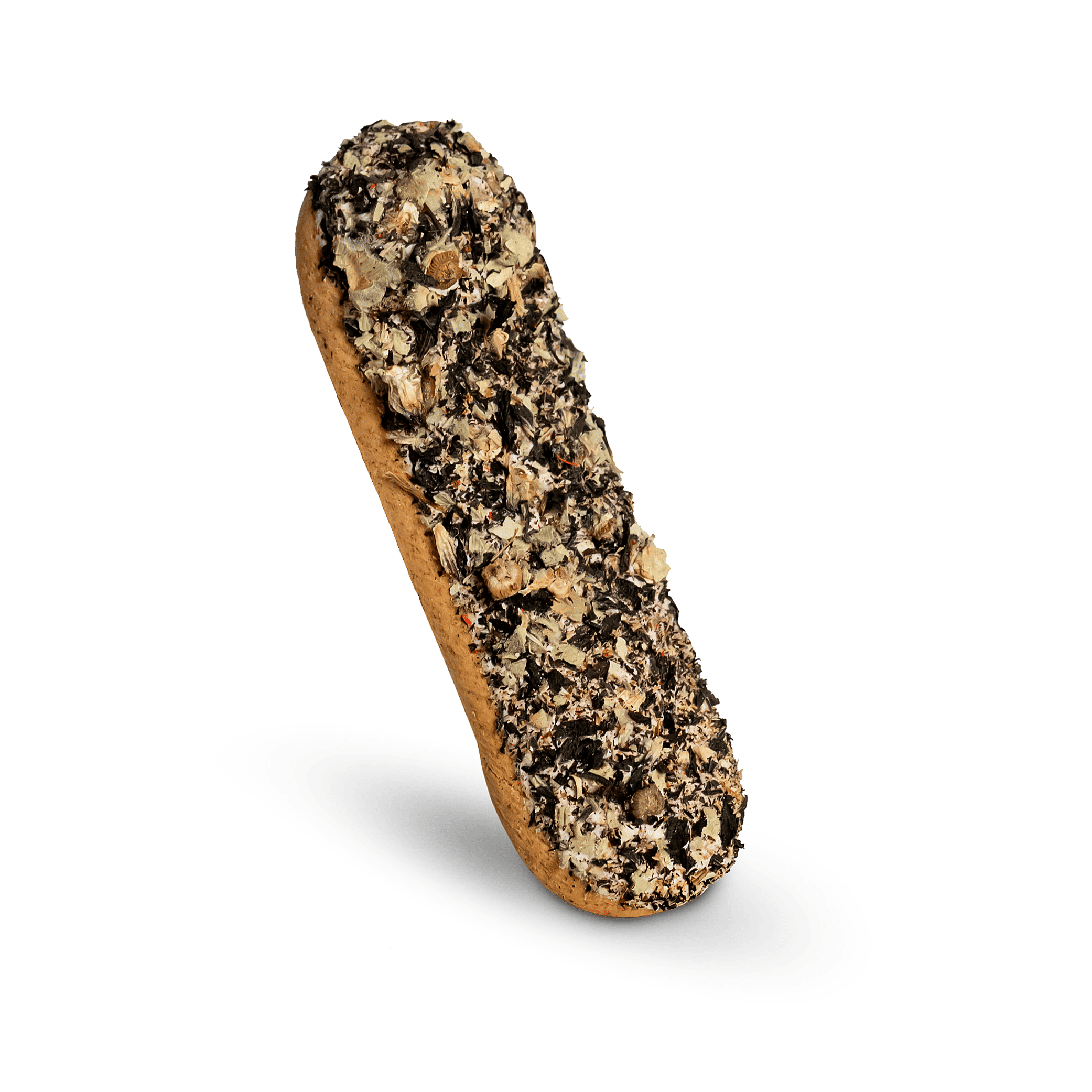 Biscotto per cavalli a forma di eclaire ricoperto di delicati petali di Malva. Venduto singolarmente.