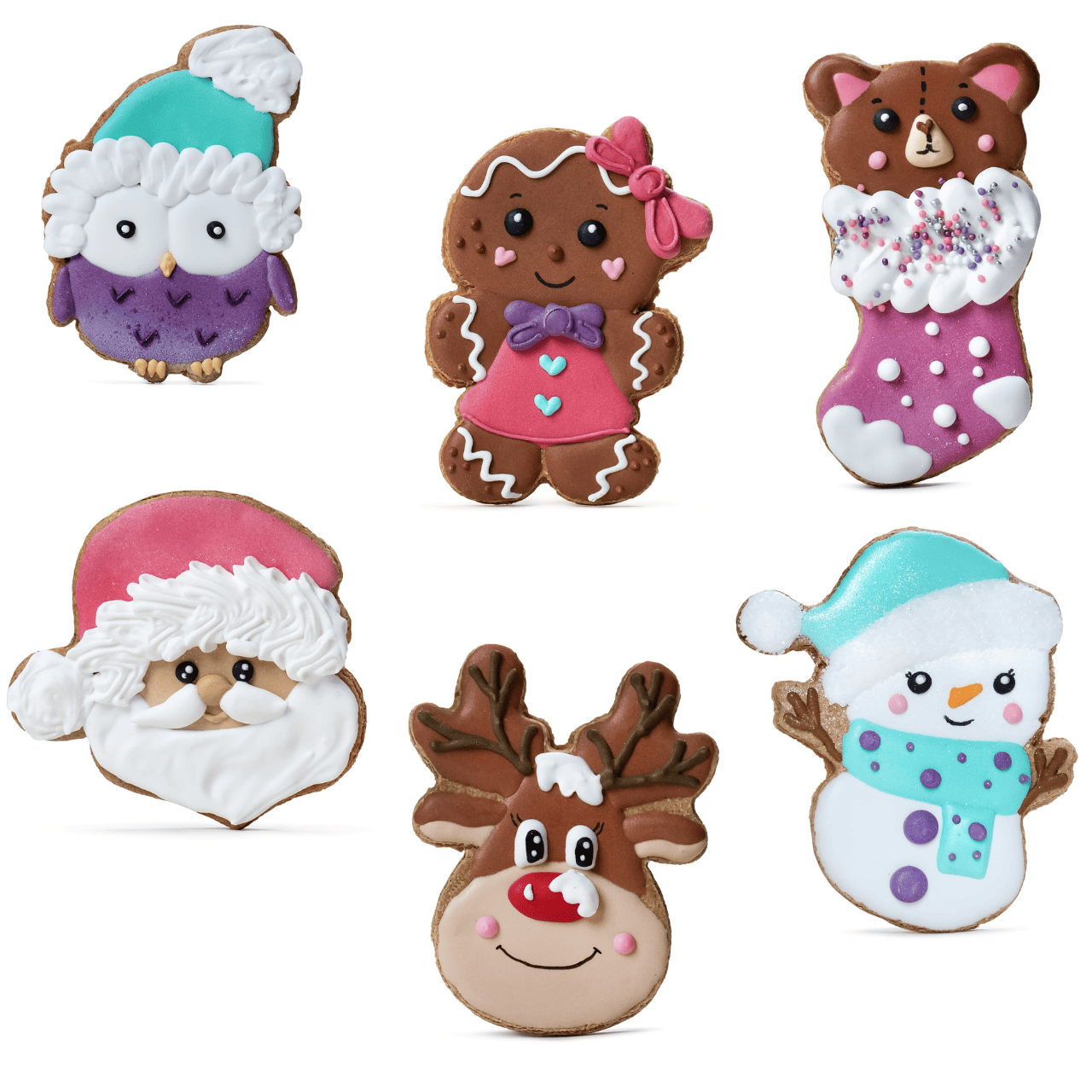 Biscotti Candy Horse venduti singolarmente a forma di renna, pupazzo di neve, pinguino natalizio, omino di marzapane, babbo natale e orsetto natalizio. Questi biscotti sono tutti decorati a mano e sono pensati per deliziare i vostri cavalli come dolce regalo occasionale.