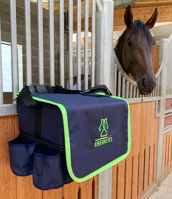 • Tracolla aggiuntiva facilita il trasporto della borsa in scuderia o durante i concorsi;