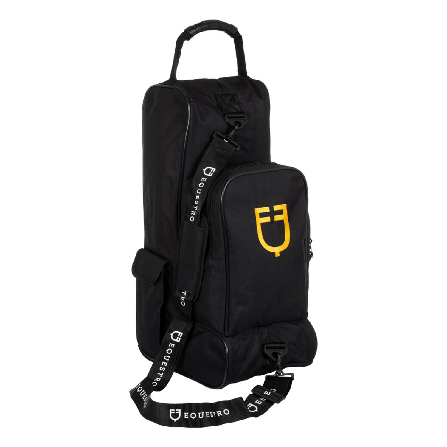 La borsa porta stivali e porta casco in cordura con finiture in gomma e doppia zip è un accessorio di alta qualità pensato per soddisfare le esigenze degli amanti dell'equitazione.
