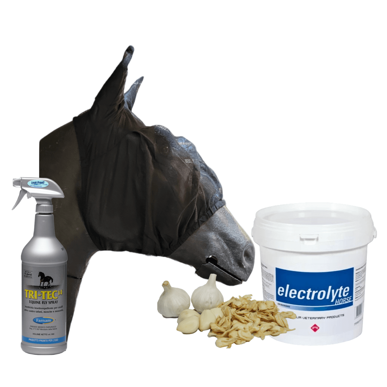 Con questo set avrai tutto l'occorrente per tener lontano gli insetti dal tuo cavallo e combattere il caldo.