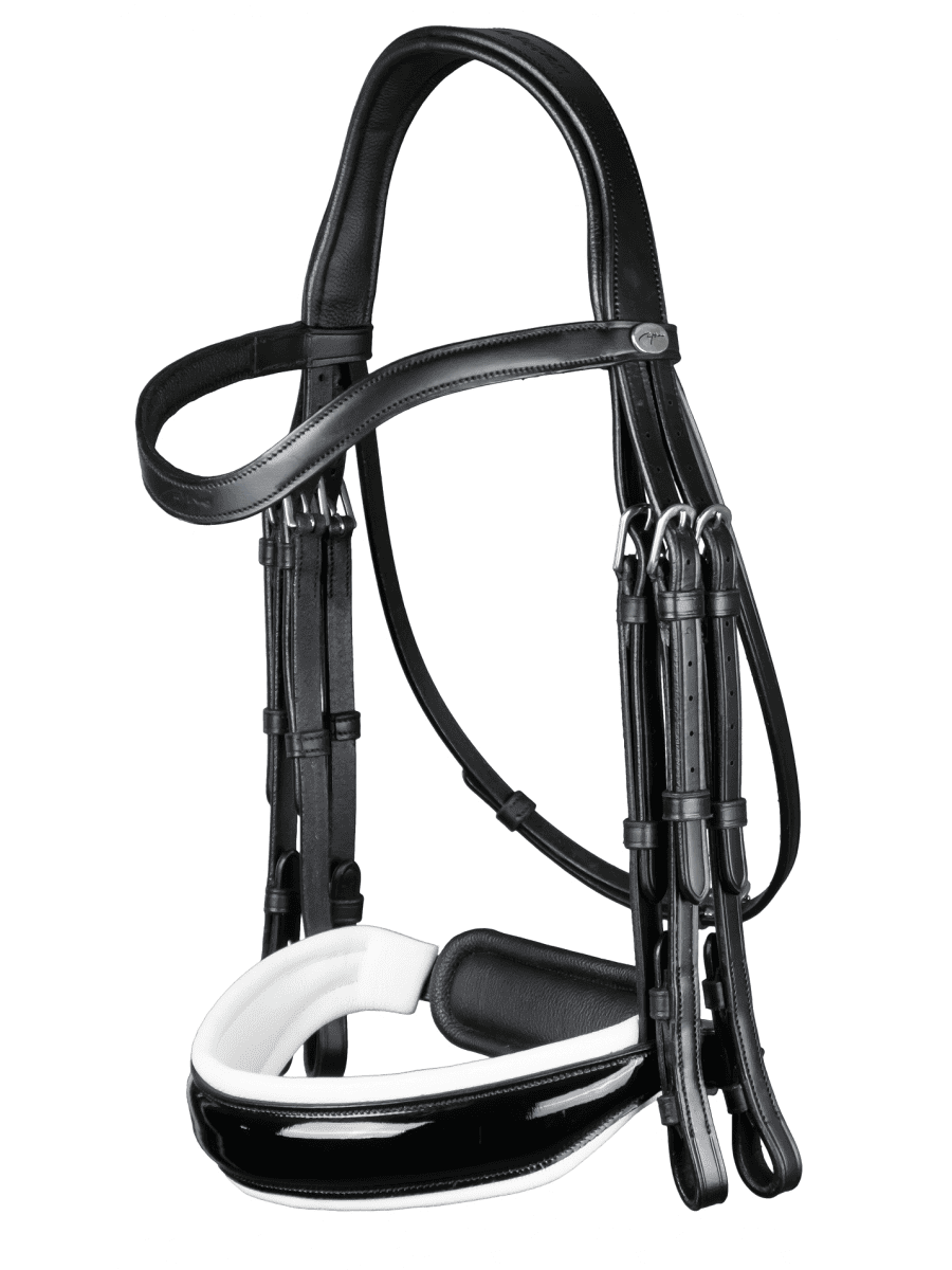 Briglia da dressage appartenente alla collezione Working by Dyon con nasalina imbottita bianca.