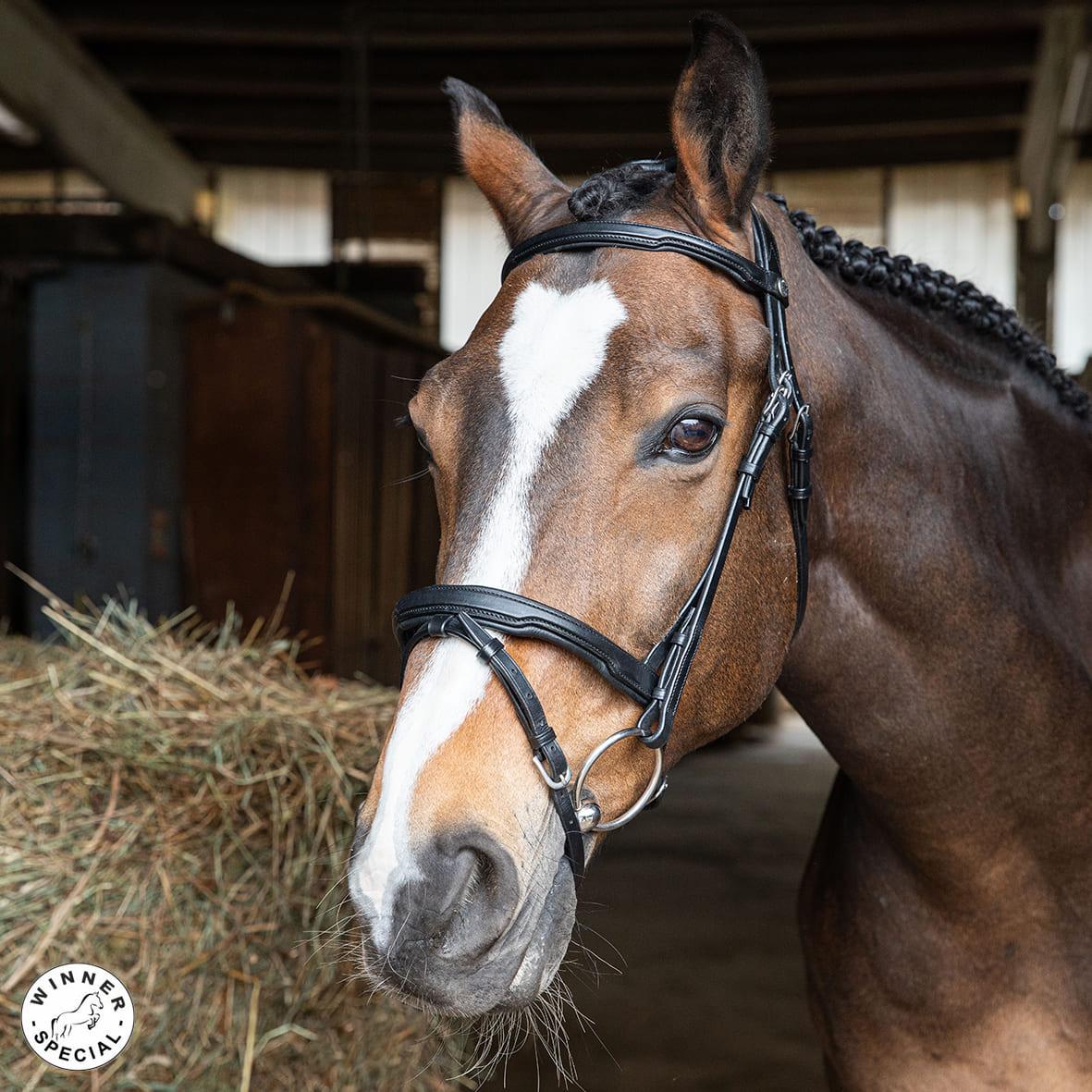 Briglia in cuoio sagomato Winner special, disponibile in taglia cob nella variante di colore nero.