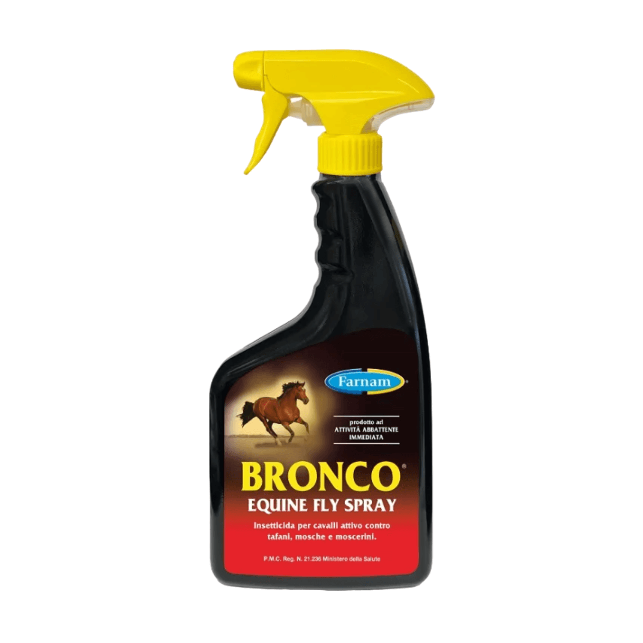 Spray insetticida per cavalli attivo contro tafani, mosche e moscerini. Bronco ha un'attività abbattente pressoché immediata ed un'attività residuale di 2-3 giorni. Lo speciale nebulizzatore consente una pratica e veloce applicazione del prodotto.