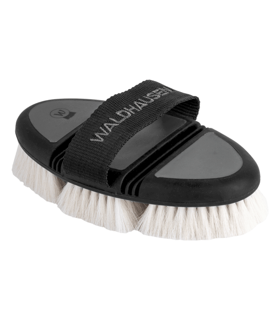 Grazie alle setole estremamente morbide in crine di capra, la brusca lucidante assicura una piacevole pulizia piena di coccole e rimuove la polvere sottile, donando al mantello lucentezza.