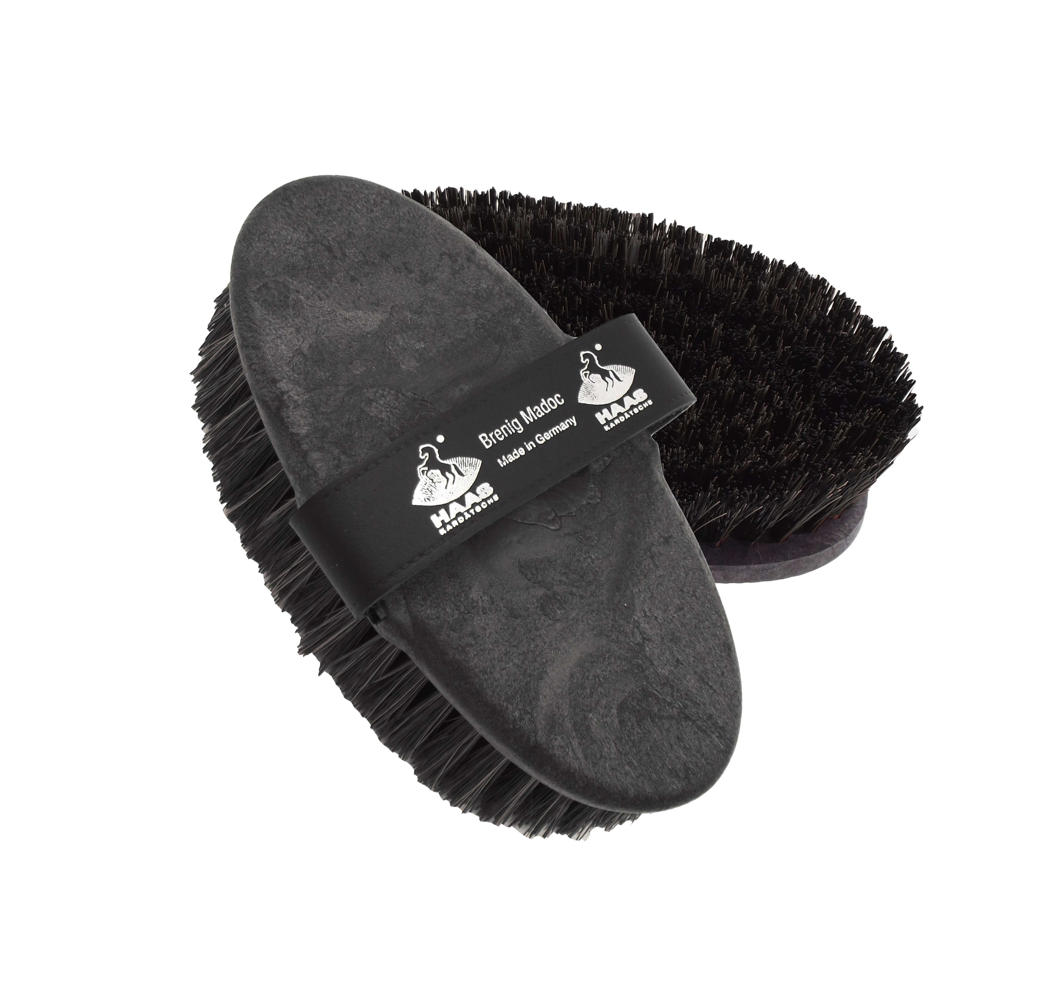 Brusca per cavalli con setole di lunghezza 5 cm ideale per pulire il musetto del cavallo. Dotata di cinghia passamano.