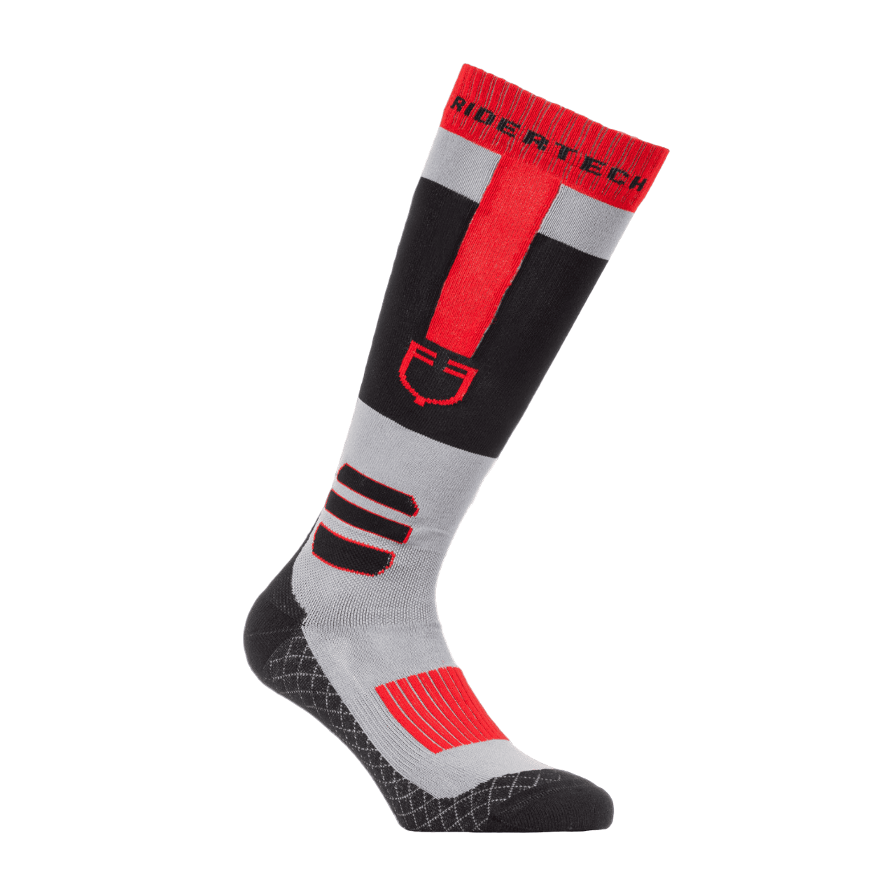 Calzini tecnici in tessuto elasticizzato leggero, traspirante e confortevole con cuciture termosaldate, segno distintivo della collezione Ridertech.