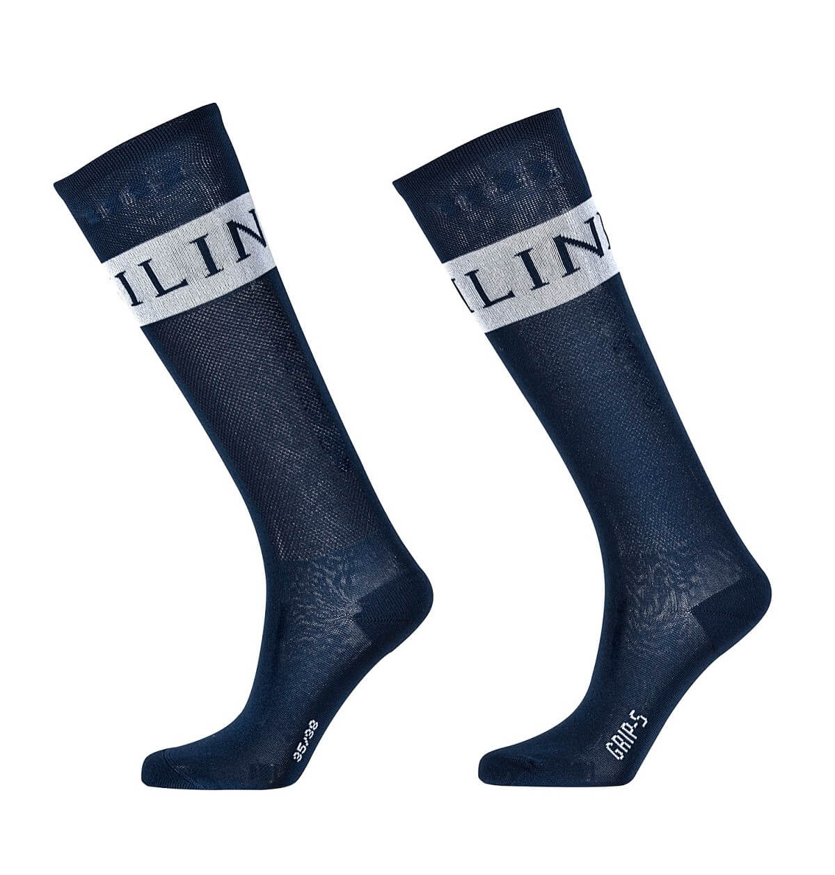 Calze Equiline modello Egge unisex disponibili nel colore blu e sabbia.