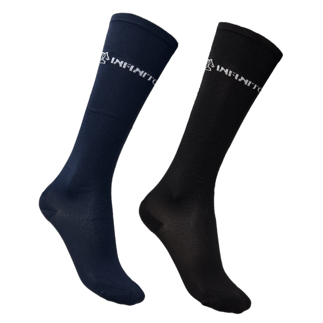 Calzini Infinito unisex con tallone rinforzato e scritta Infinito che gira attorno al polpaccio.