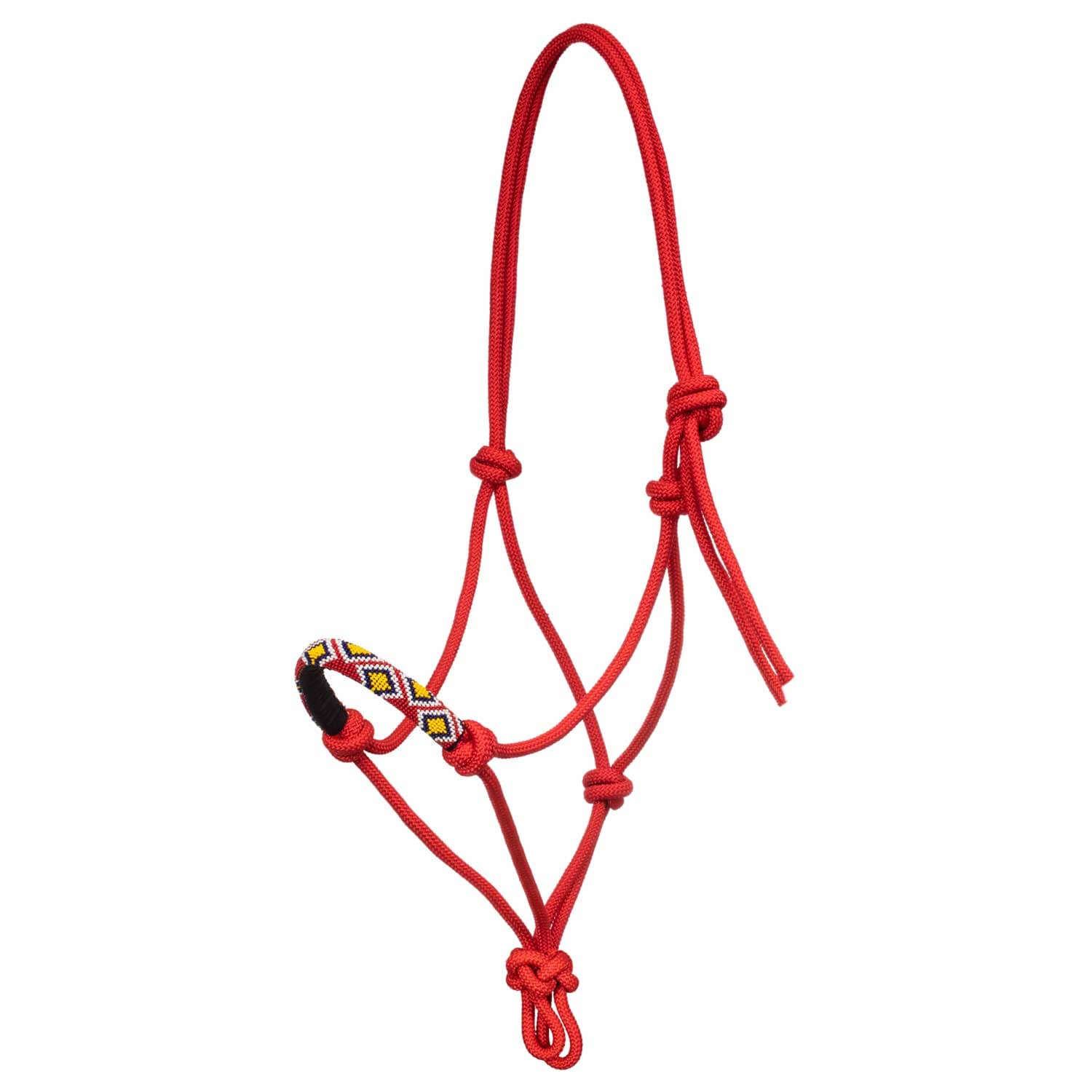 La capezza in corda annodata con decorazioni navayo è realizzata in corda resistente e offre un controllo sicuro del cavallo grazie ai suoi nodi.