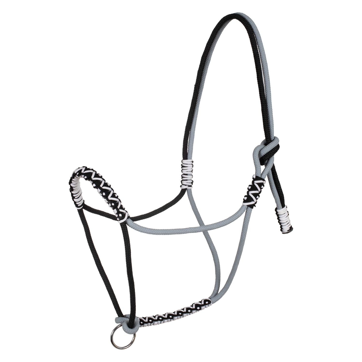 Capezza in corda con chiusura laterale a nodo regolabile con inserti intrecciati che la rendono unica. Garantisce una vestibilità perfetta ed estrema praticità. La capezza presenta un anello in acciaio inox per agganciare la lunghina.