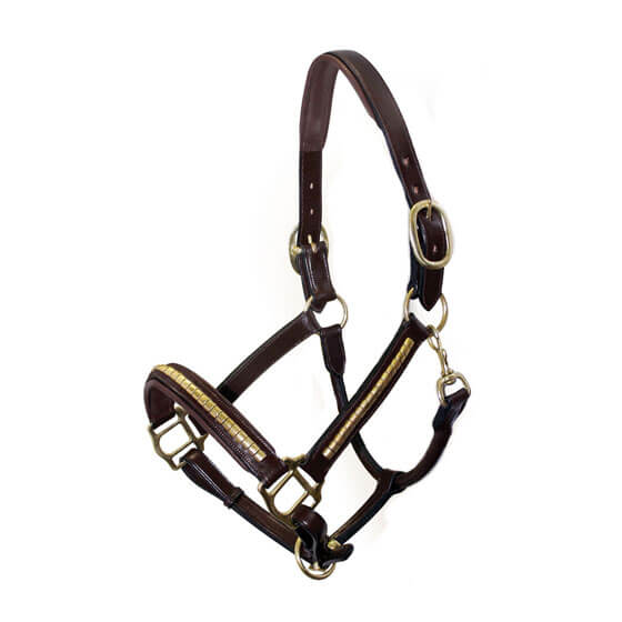 Capezza regolabile in morbido cuoio italiano decorata da meravigliosi clincher ottone (oro).
