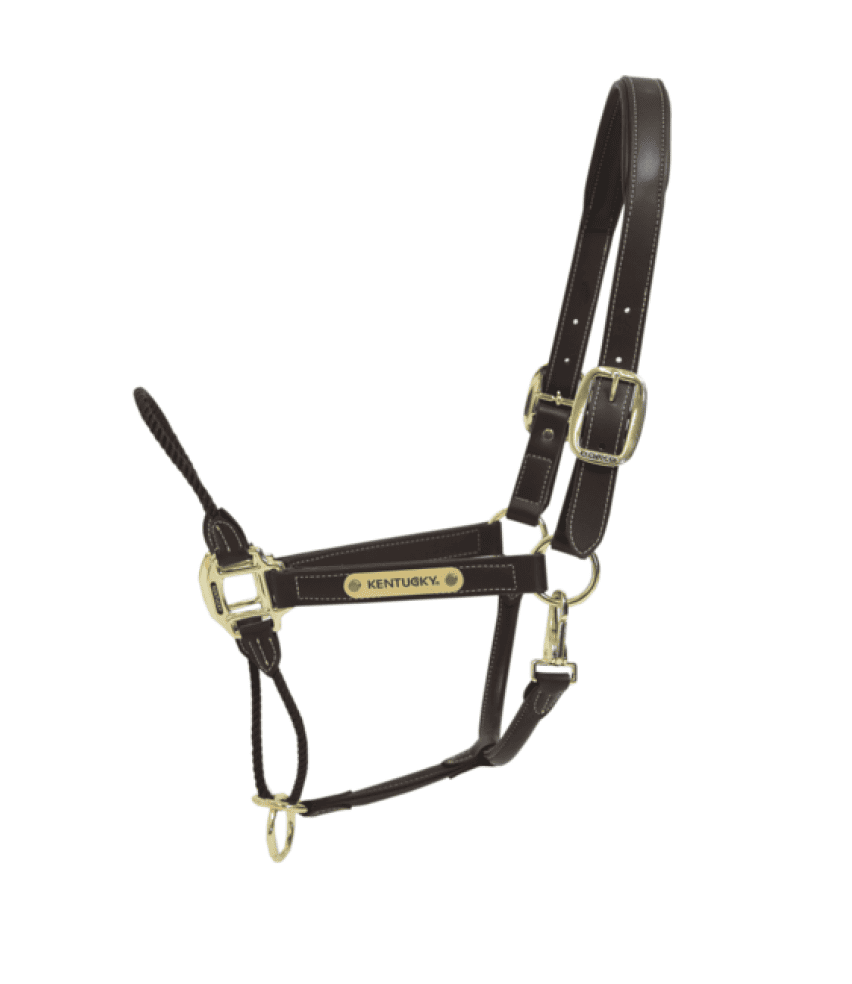 Tutte le fibbie sono placcate in oro per abbinarsi ai cordini. La cavezza è dotata di una targhetta con il nostro logo Kentucky che può essere girata e incisa.