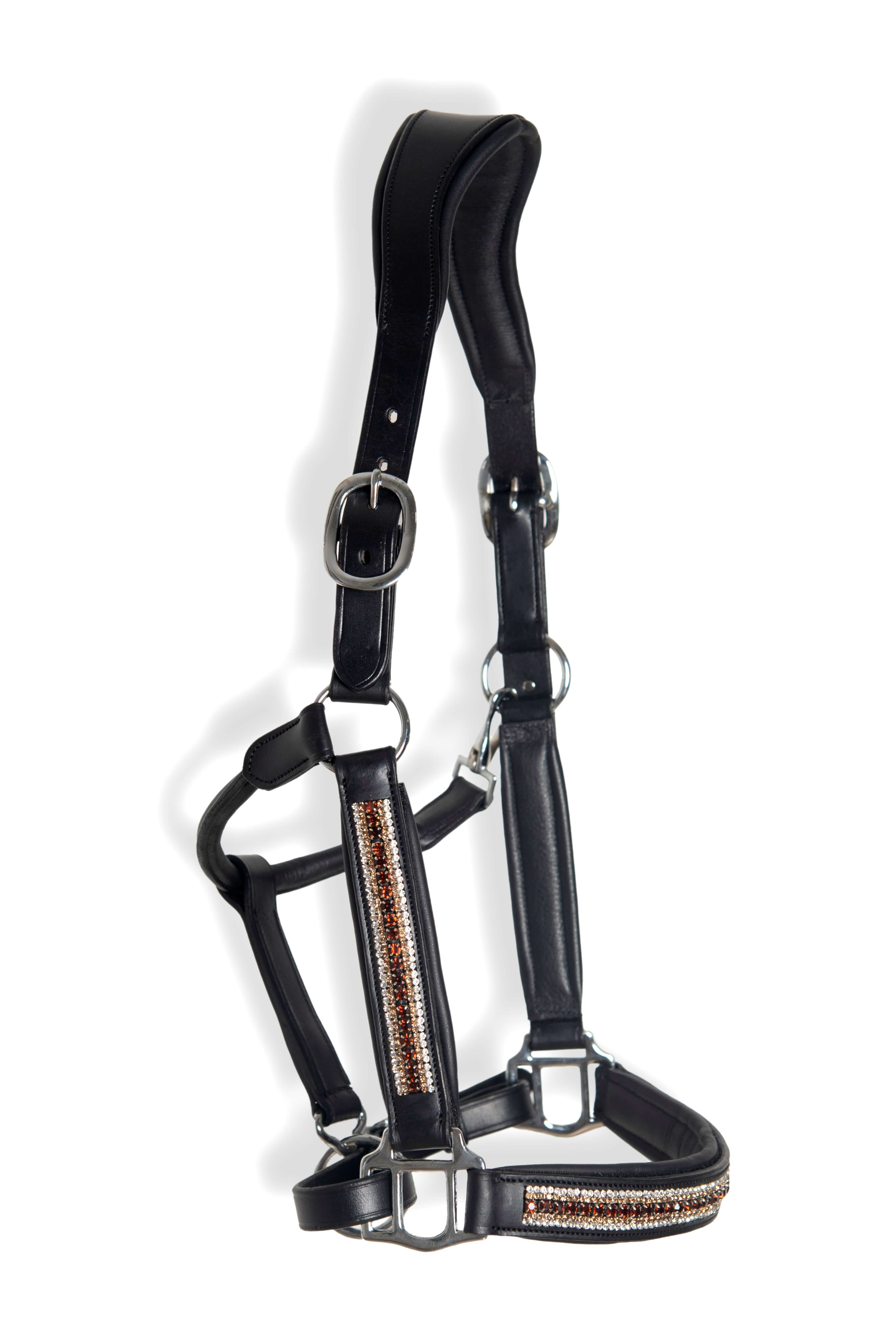 Capezza in cuoio Sparks N Blings modello Luxury con forma anatomica e cristalli Swarovski sui toni del marrone.
