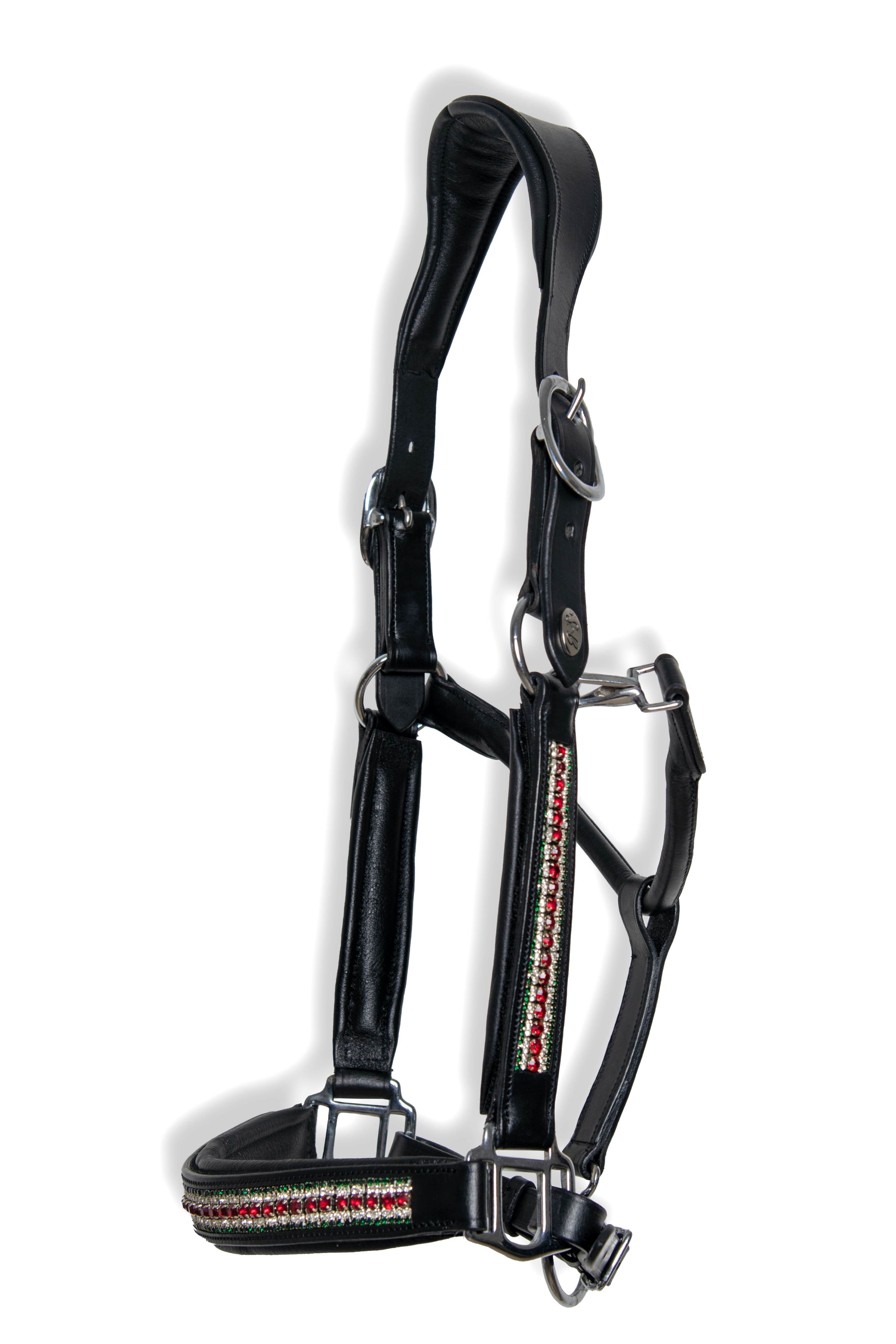 Capezza in cuoio Sparks N Blings modello Luxury con forma anatomica e cristalli Swarovski tricolore.