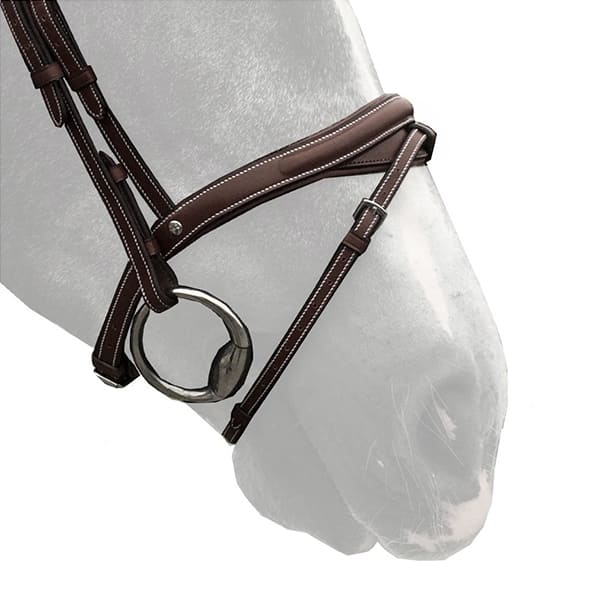 Capezzino inglese imbottito in cuoio con un'ulteriore imbottitura a mezza luna sotto l'attacco del chiudibocca per prevenire pressioni dannose.