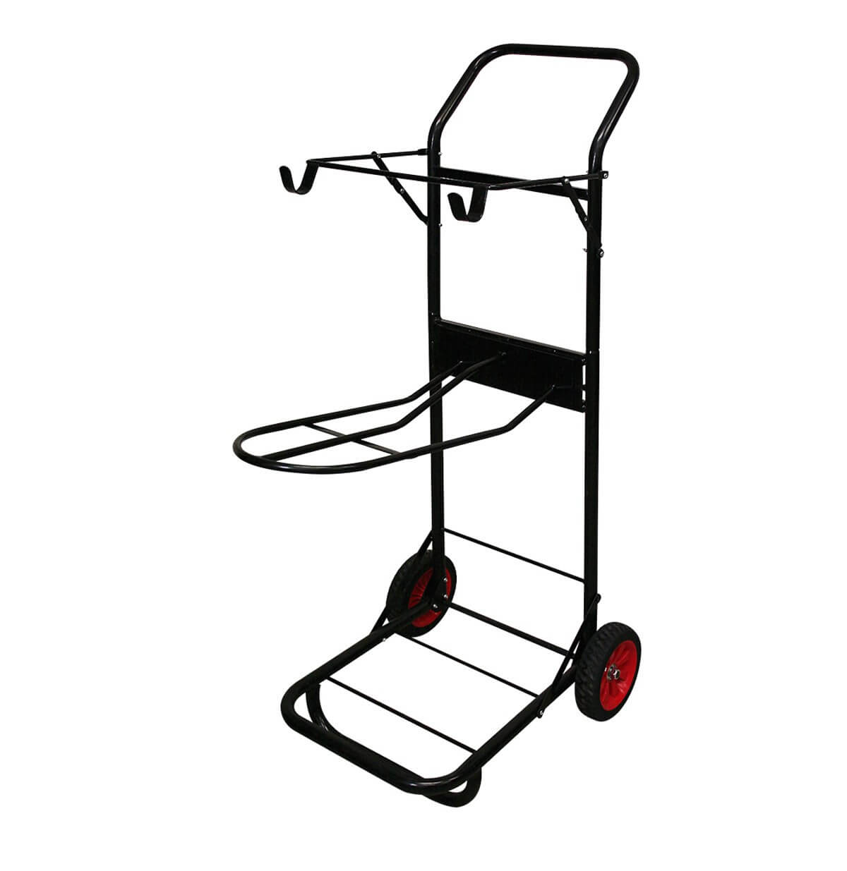 Carrello portasella e porta accessori in metallo verniciato nero pieghevole, smontabile. Misura unica.