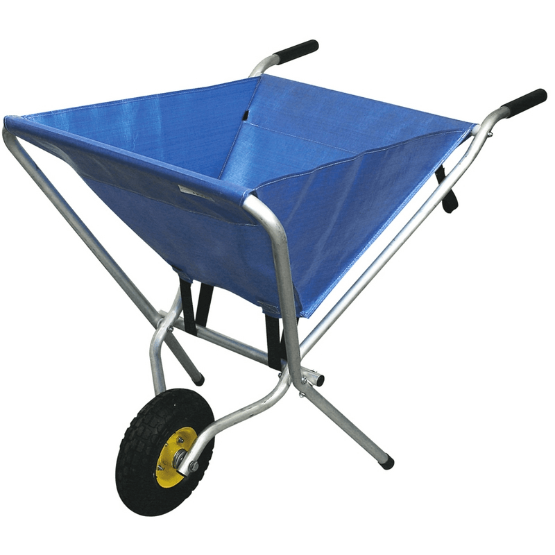 Carriola pieghevole in alluminio con ruota pneumatica e maniglie in PVC.