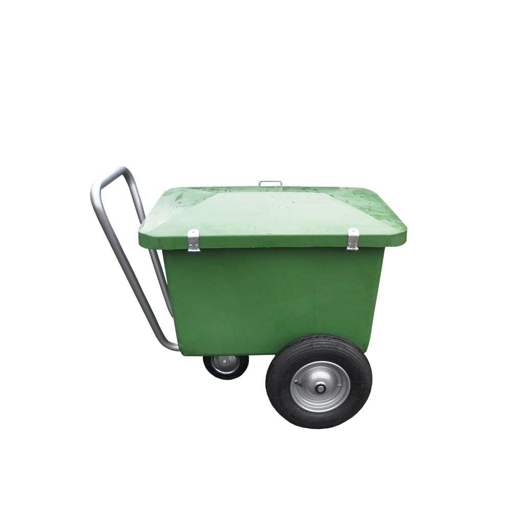 Carriola porta mangime con divisorio e coperchio da 330 litri.