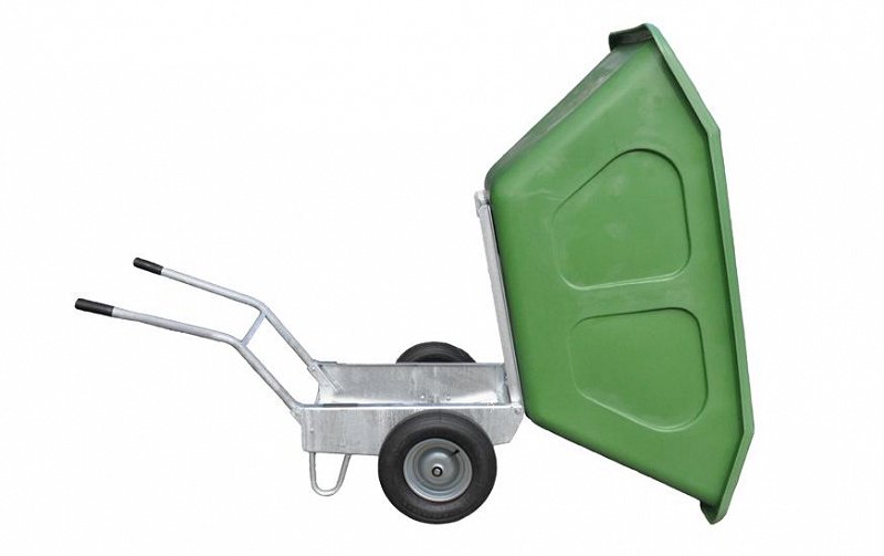 La carriola FKK Roto ha il centro di gravità del telaio spostato leggermente in avanti, per rendere facile lo scarico ed aumentare la stabilità e facilità di manovra.