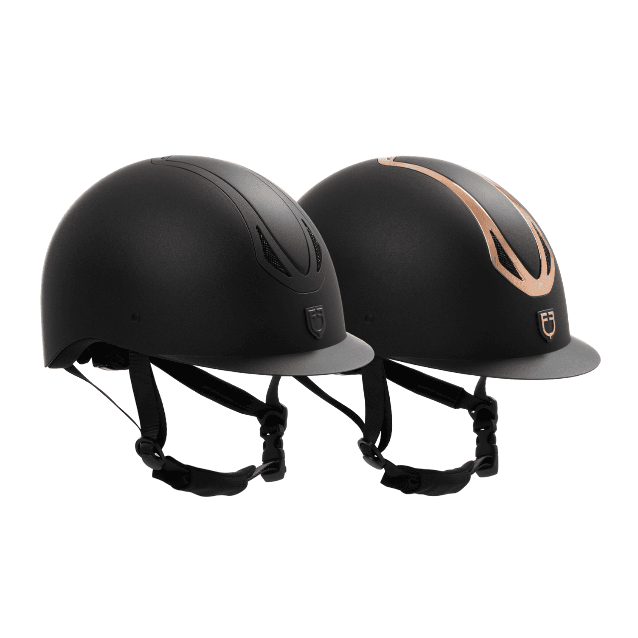 La presenza della targhetta con logo tono su tono con il frame, rende il casco elegante e raffinato, in pieno stile Equestro.