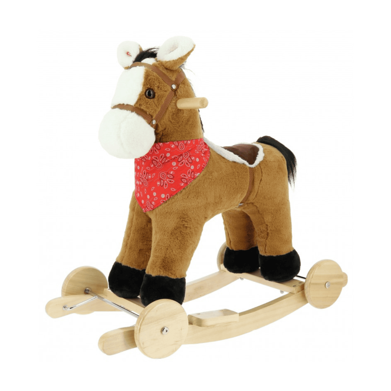Cavallo a dondolo con finiture molto belle grazie ai suoi accessori come sella, briglie e staffe.
