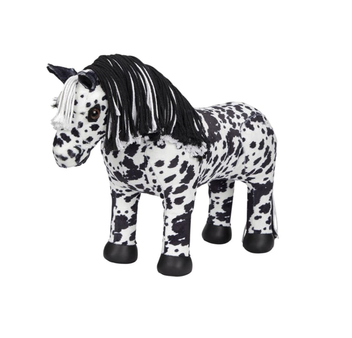 Dakota è un bellissimo cavallo giocattolo dal manto appaloosa sui toni del nero e bianco.