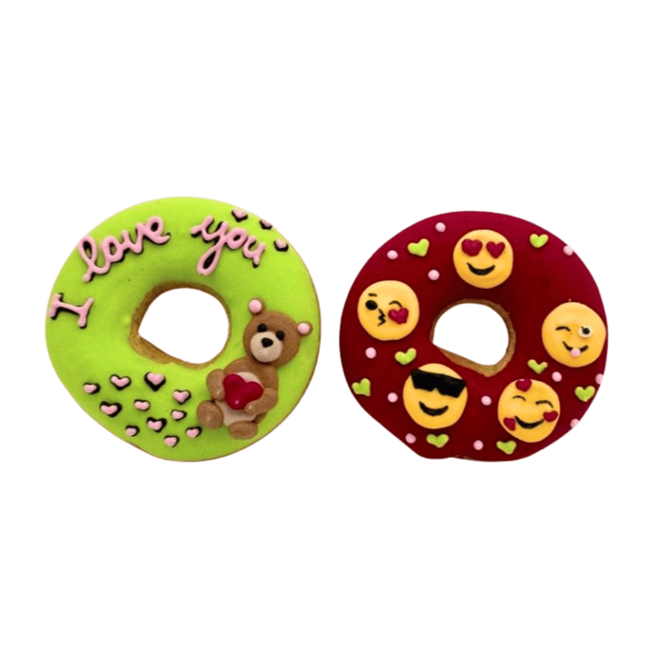 Set di 2 ciambelle per cavalli decorate a mano con glassa vegana al 100% in edizione limitata per San Valentino.