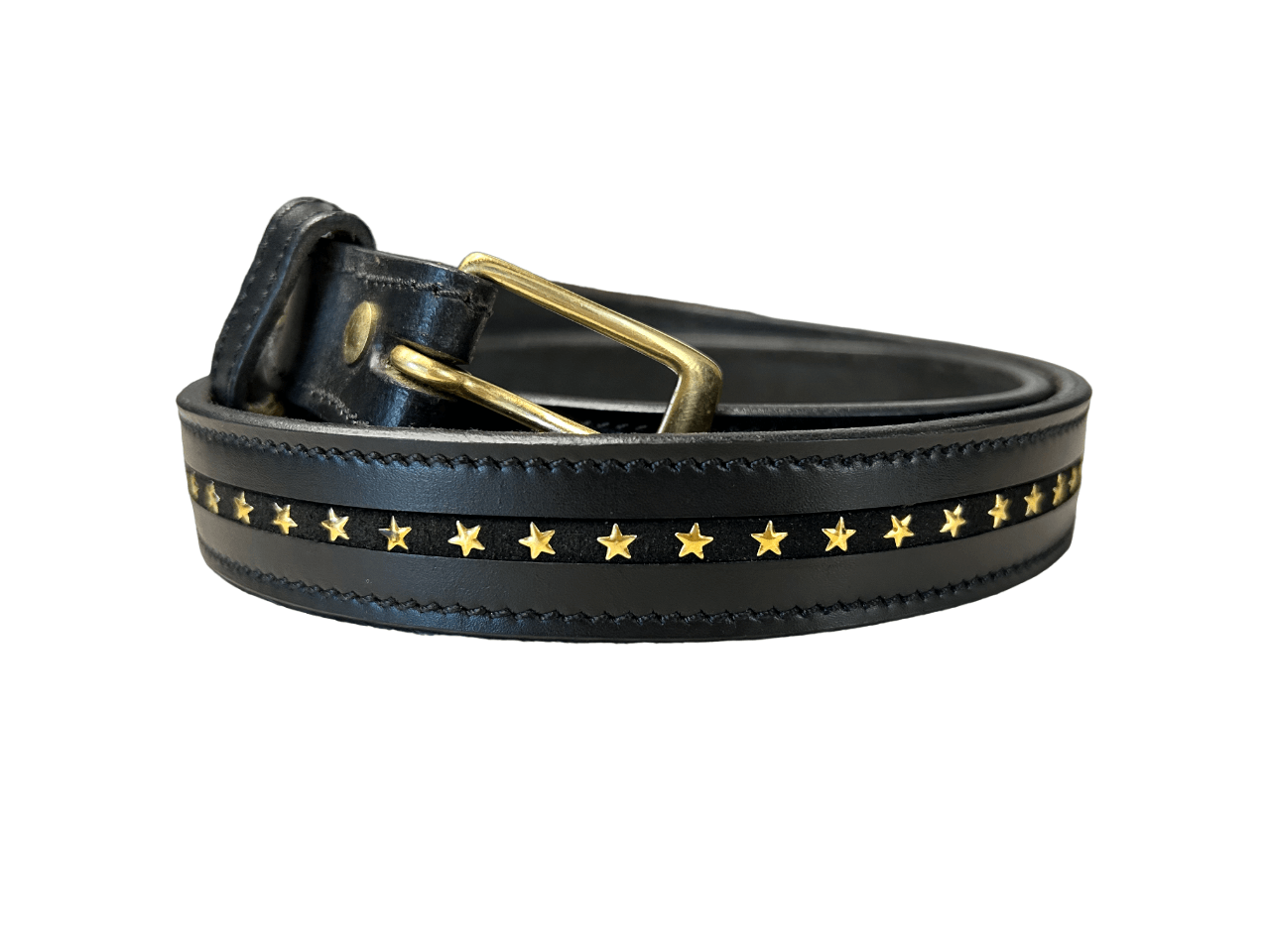 Cintura in cuoio nero con stelline oro.