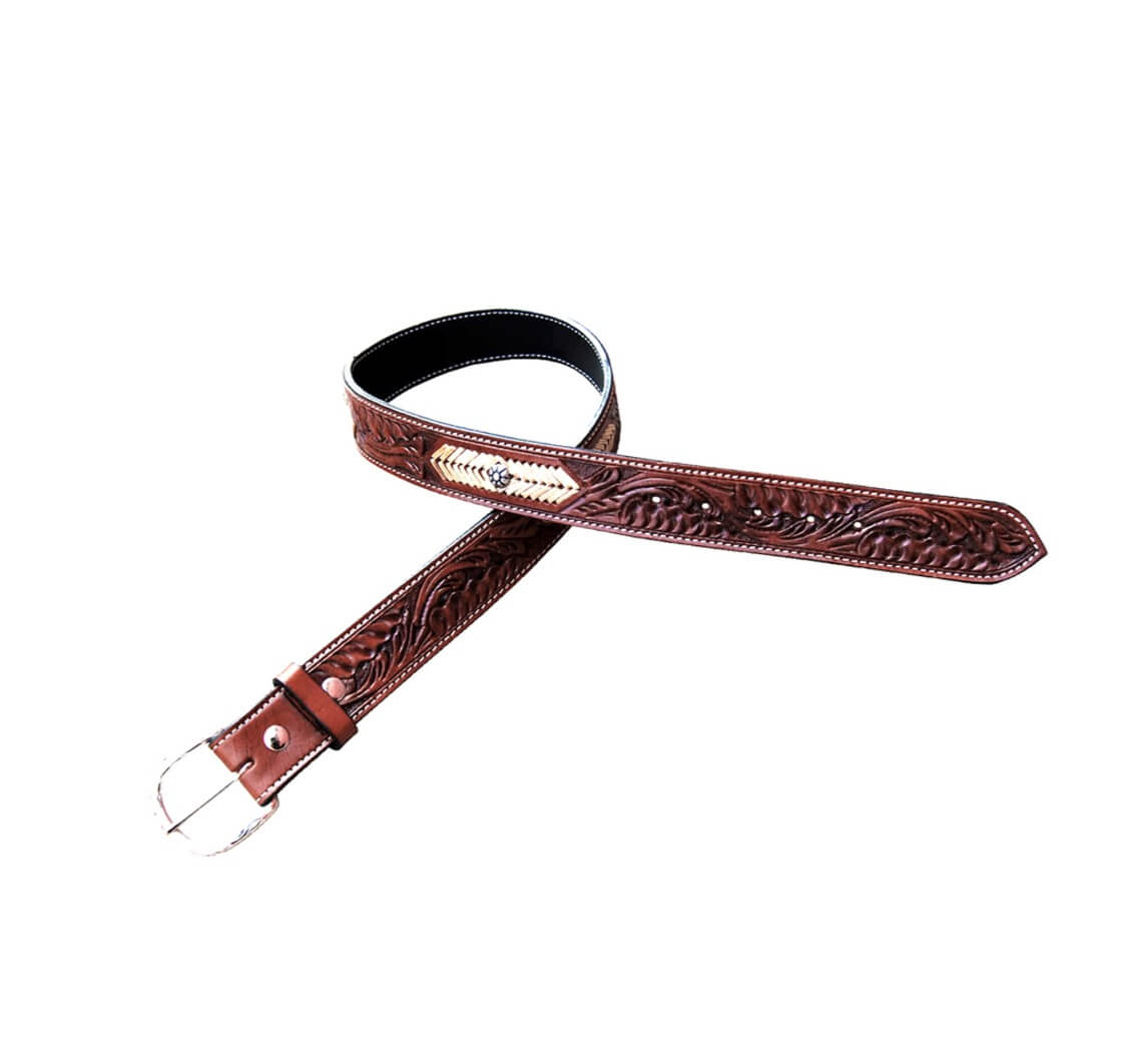 Cintura Western Pool’s con lavorazione flower e riporti in rawhide.