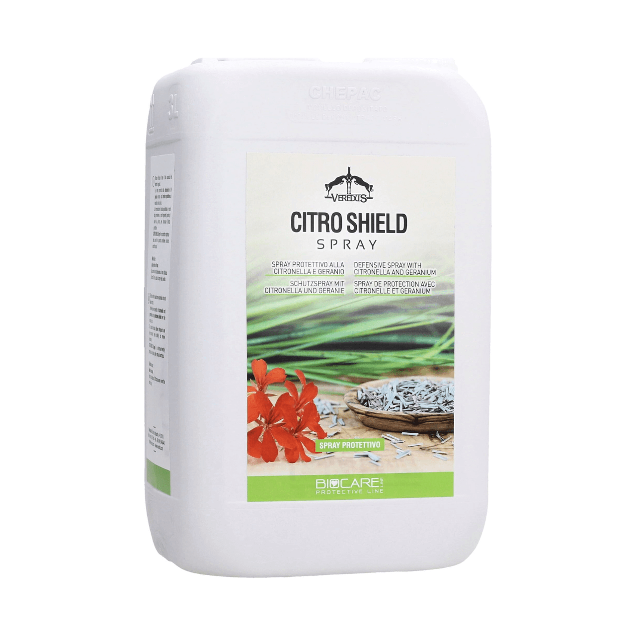 Flacone di 3 litri di insetto repellente spray alla citronella, geranio e cannella che creano una barriera protettiva sul mantello del cavallo.