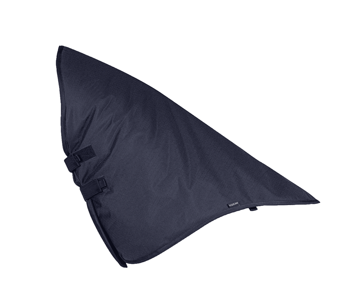 Copricollo blu da paddock imbottito con 200 gr di ovatta è traspirante ed è realizzato con tessuto in poliestere antivento e impermeabile.