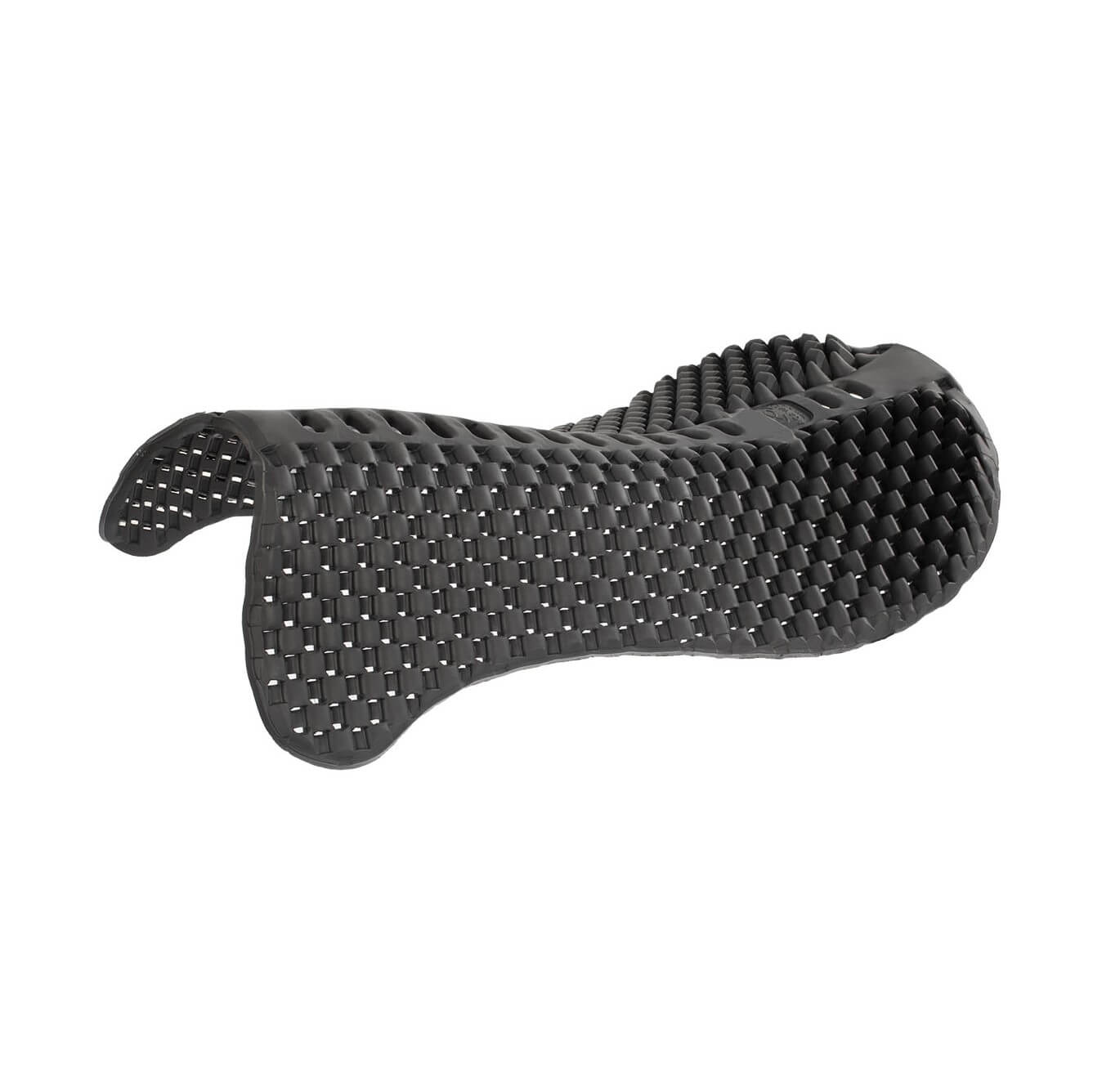 La speciale e innovativa struttura di questi compensatori è composta, infatti, da una moltitudine di piccoli rigonfiamenti con fori laterali che permettono una circolazione d’aria intensa, orientata orizzontalmente. Oltre a generare un flusso d’aria rinfrescante che mantiene la parte posteriore del cavallo perfettamente asciutta, i rigonfiamenti creano anche un effetto ammortizzante assorbendo gli urti ogni volta che vengono compressi e rilasciati.