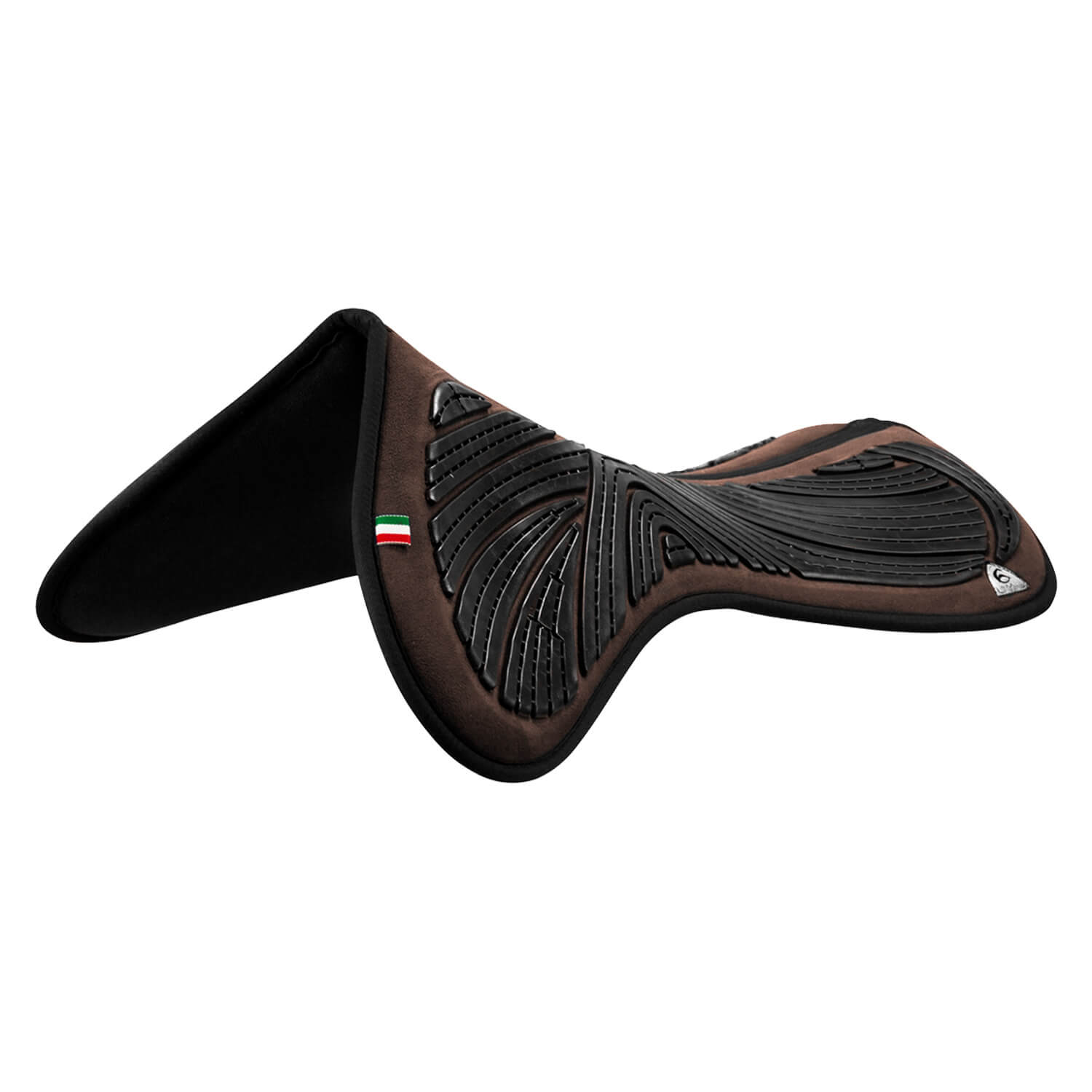 Il taglio anatomico del compensatore e le caratteristiche tecniche del memory foam consentono al pad di adattarsi e modellarsi profondamente alla silhouette del cavallo consentendo inoltre di distribuire la pressione superficiale su una vasta area. A queste caratteristiche si aggiungono la capacità di assorbire gli urti, smorzare le vibrazioni e regolare la temperatura corporea del cavallo.