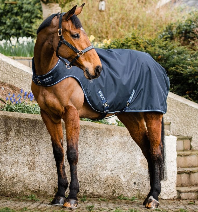 Coperta 100 grammi impermeabile ideale per il cavallo in movimento per mantenergli i muscoli caldi e ripararlo dalla pioggia. Il design anatomico con taglio frontale e sistema di chiusura a strappo singolo elimina i punti di pressione che si formano intorno alle spalle durante l'esercizio e offre una maggiore libertà di movimento.