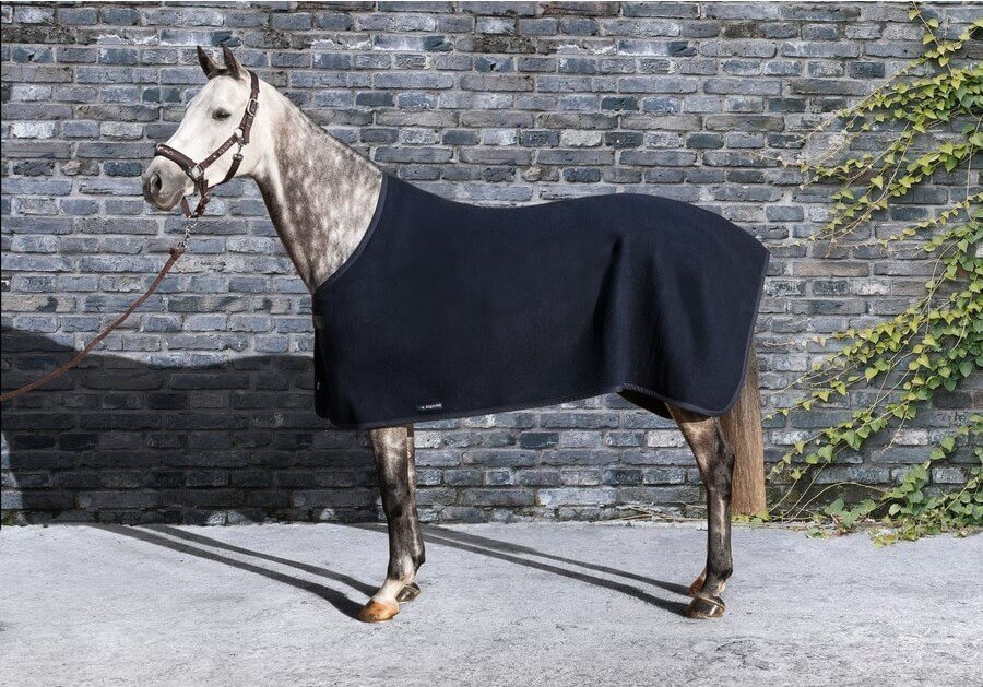 Coperta da passeggio Equiline in 100% pura lana vergine 700gr disponibile nella variante di colore blu navy.