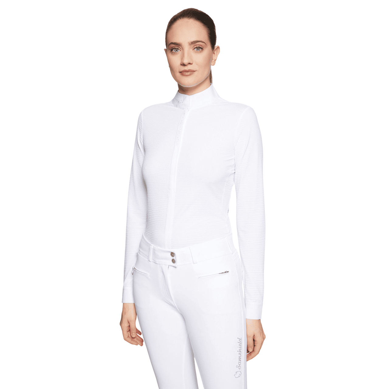 Camicia alla coreana da equitazione a maniche lunghe modello Jella Premium di Samshield, ideale per le competizioni invernali.