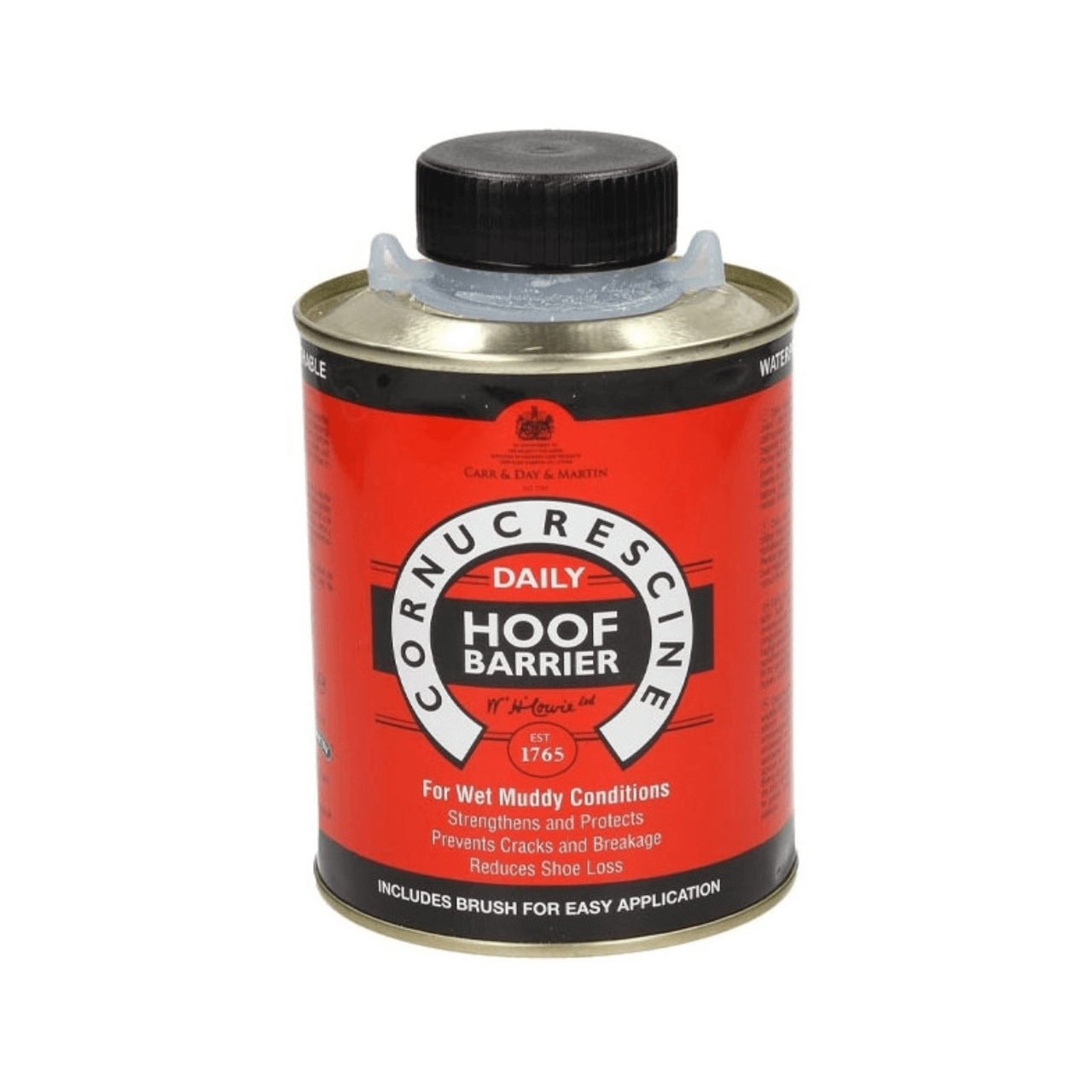 Cornucrescine Daily Hoof Barrier è un olio che rafforza e supporta la struttura dello zoccolo per migliorarne la salute e la ritenzione. Consigliato per i cavalli con gli zoccoli umidi.
