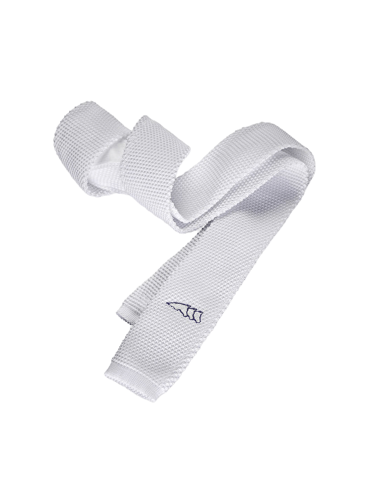 Cravatta da concorso in cotone bianco con lavorazione a chicco di riso e girocollo interno liscio in raso.