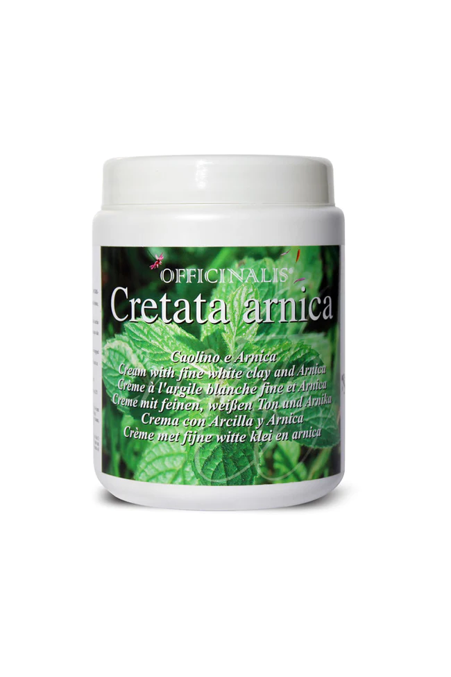 La cretata Arnica con estratto di menta è una pasta del tutto naturale costituita da una miscela di argille (caolino), arnica e artiglio del diavolo.
