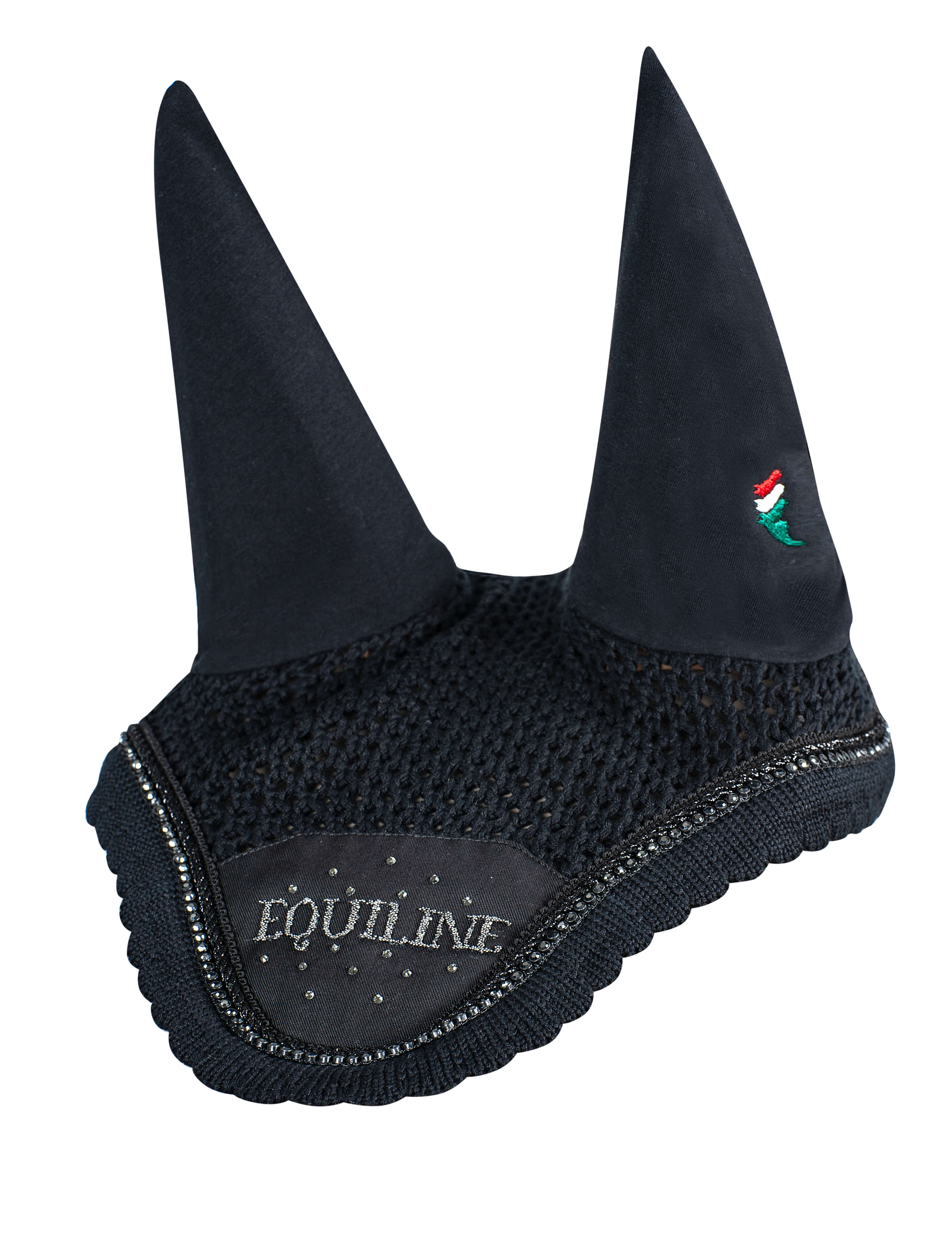 Cuffietta antimosche Equiline Octagon C disponibile nella variante di colore nero impreziosita da pietre Swarovski.