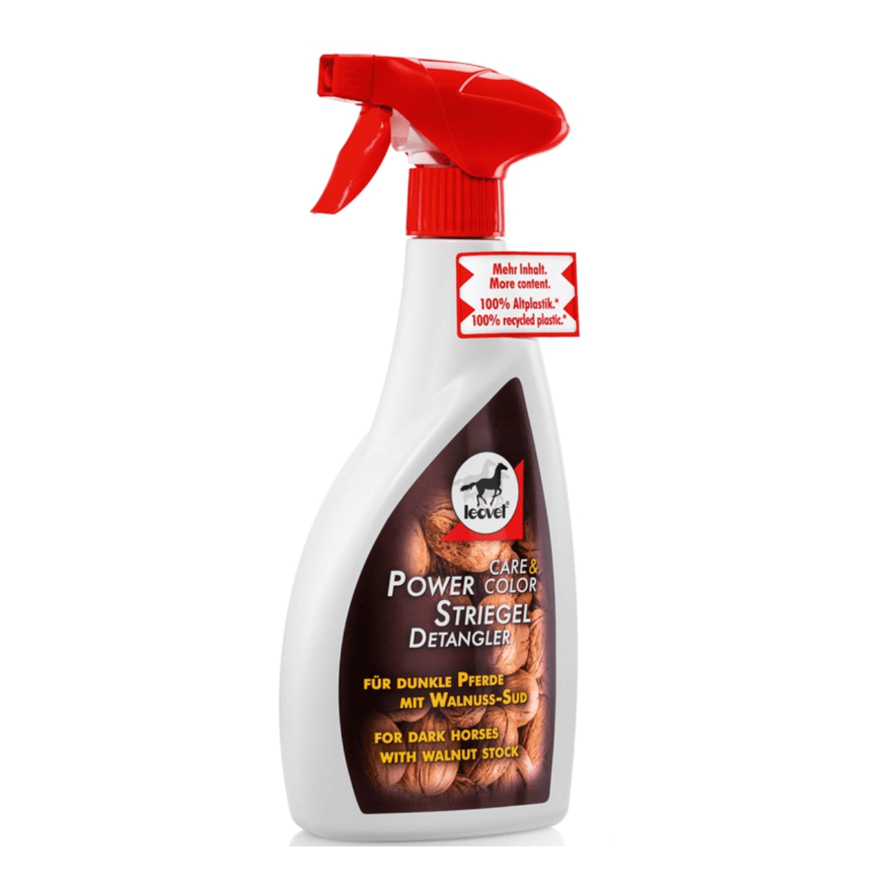 Districante power Leovet da 550 ml per cavalli scuri con decotto di noce aiuta l'eliminazione di nodi, dona lucentezza e volume al manto, coda e criniera e svolge una naturale azione scurente e riflessante ideale per i manti più scuri.