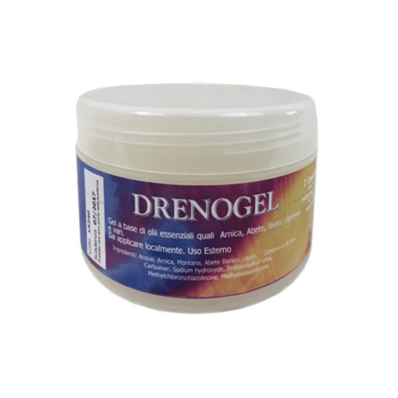 Drenogel è un gel a base di numerosi olii essenziali quali arnica, abete, lauro e cipresso con azione lenitiva.