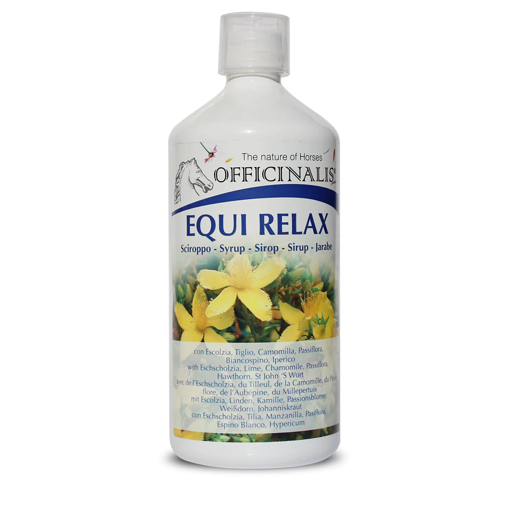 Equi relax contiene una miscela di erbe officinali ad azione rilassante (tiglio, passiflora, eschscholtzia - papavero della California e camomilla), triptofano, un aminoacido essenziale necessario al benessere del cavallo, cloruro di magnesio, per regolare gli stati nervosi e una composizione vitaminica equilibrata.
