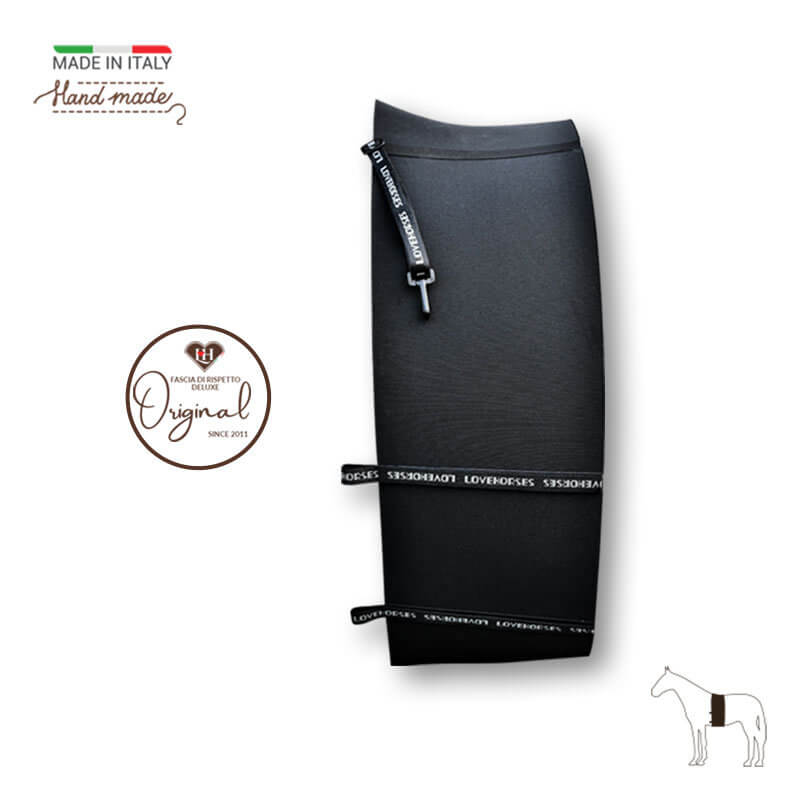 Fascia di rispetto con elastico100% made in Italy e certificato STANDARD 100 by OEKO-TEX®. Garantisce la totale assenza di sostanze chimiche che potrebbero essere nocive per il cavallo.